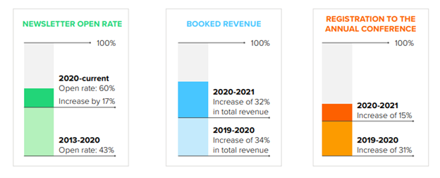 You can even compare yourself to a look-alike association to show how well you’re accomplishing your goals to put it into perspective for your board. Does your competitor have more members or registrants at the conference? Showcase the numbers and strategies to get ahead of your competition.