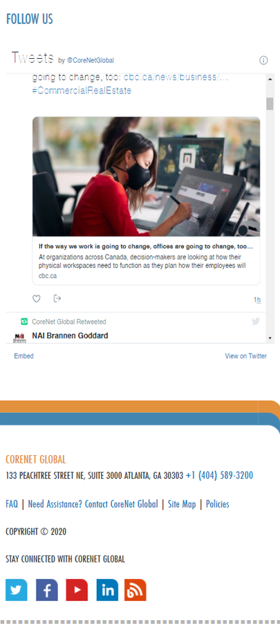 - Membership in CoreNet Global is individual, cannot be canceled, and is non-transferable to another person. No refunds will be payable for any unused portion